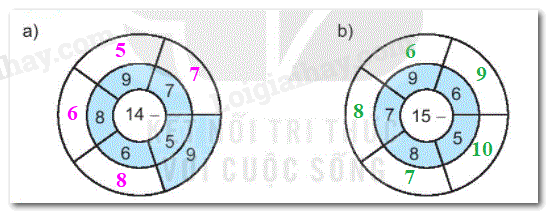 Tính nhẩm kết quả các phép trừ (Số bị trừ là số ở vòng tròn trong cùng và số trừ là các số thuộc vòng số 2) rồi điền kết quả thích hợp vào chỗ chấm.