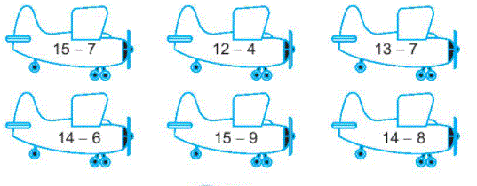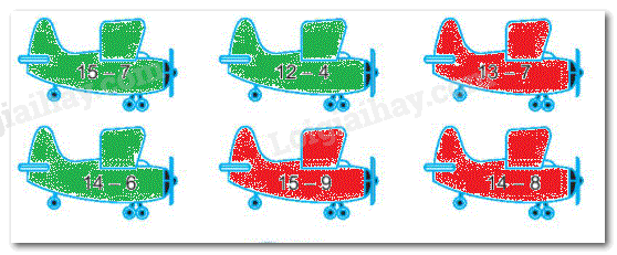 Tô màu đỏ vào những máy bay ghi phép trừ có hiệu bằng 6 , màu xanh vào những máy bay ghi phép trừ có hiệu bằng 8.