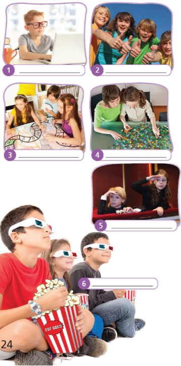(Dùng cụm từ ở bài tập 1 để điền vào các bức tranh sau.)