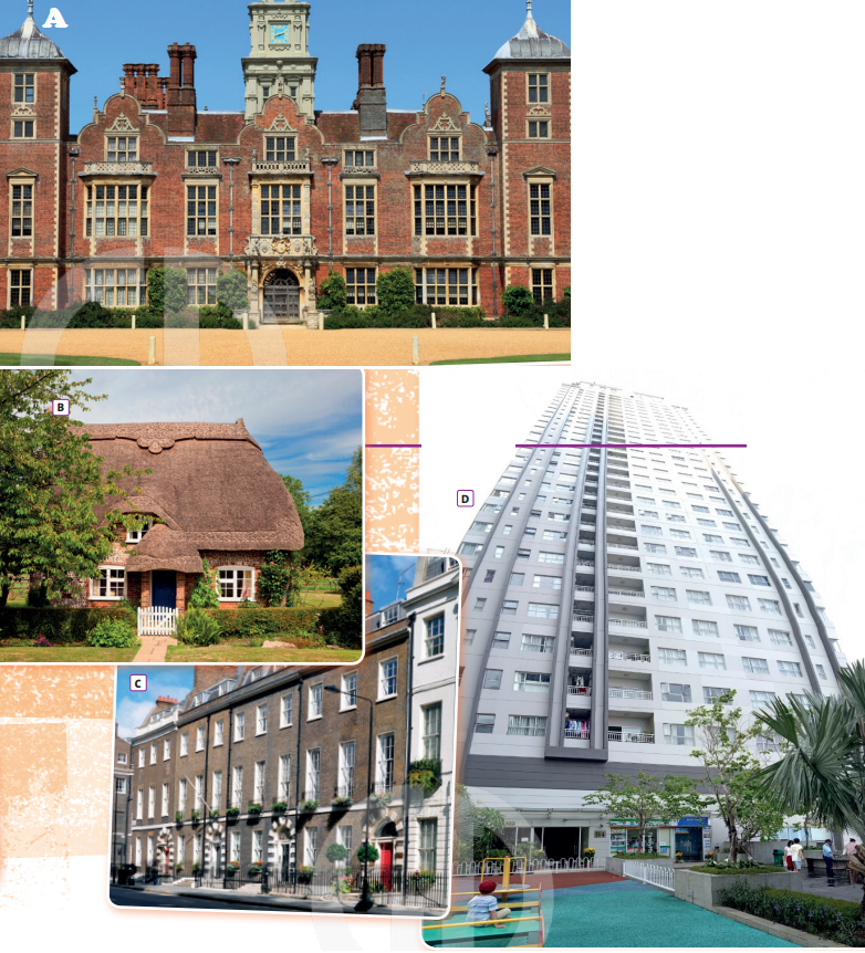 1. VOCABULARY Look at the photos. What types of homes are they? Listen and choose from the words below. What type of home do you live in?