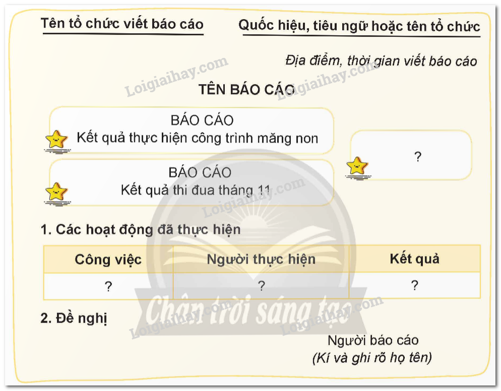 Đề bài: Viết báo cáo một công việc mà nhóm, tổ hoặc lớp em đã thực hiện.
