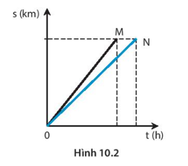 Minh và Nam đi xe đạp trên một đoạn đường thẳng. Trên hình 10.2, đoạn thẳng OM là đồ thị quãng đường – thời gian của Minh, đoạn thẳng ON là đồ thị quãng đường – thời gian của Nam. Mô tả nào sau đây không đúng?