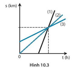 Đồ thị quãng đường – thời gian ở hình 10.3 mô tả chuyển động của các vật 1, 2, 3 có tốc độ tương ứng là v1, v2, v3, cho thấy