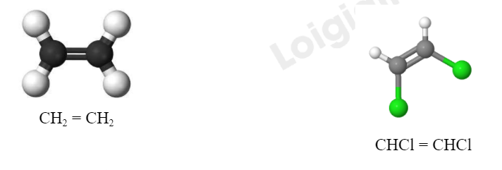 – Đối với phân tử CHCl = CHCl: liên kết giữa nguyên tử C và Cl là liên kết đôi; liên kết giữa 2 nguyên tử C, giữa C và H đều là liên kết đơn.