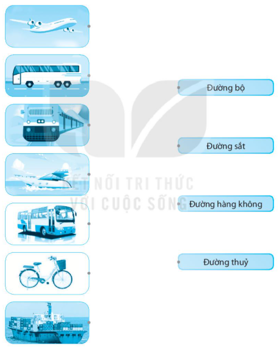 Nối các phương tiện giao thông với loại đường giao thông tương ứng.