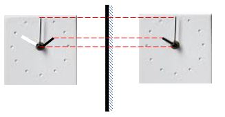 Lấy đối xứng các điểm của ảnh qua gương, ta suy ra vị trí của kim như hình