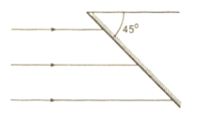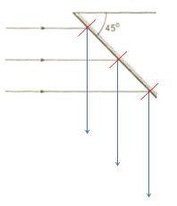 Một gương phẳng đặt nghiêng một góc \({45^0}\) so với phương nằm ngang, chiếu một chùm tia tới song song theo phương nằm ngang lên mặt gương. Gương tạo chùm tia phản xạ: