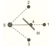 Trên hình vẽ, M là gương phẳng, S là điểm sáng. Hỏi vị trí của ảnh ảo S’ là: