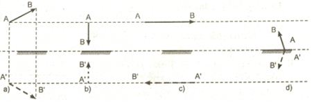 + Lấy A’ đối xứng với A, B’ đối xứng với B qua gương phẳng, sau đó nối A’ với B’ ta được ảnh của AB qua gương: