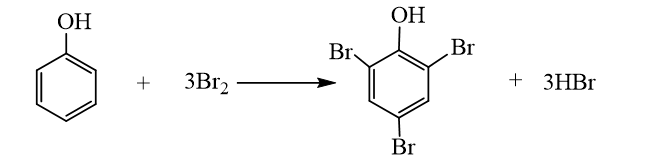 Phenol phản ứng bromine tạo kết tủa trắng 2,4,6-tribromophenol.