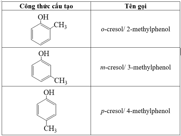 Viết các công thức cấu tạo của phenol và 1 nhóm thế CH3.