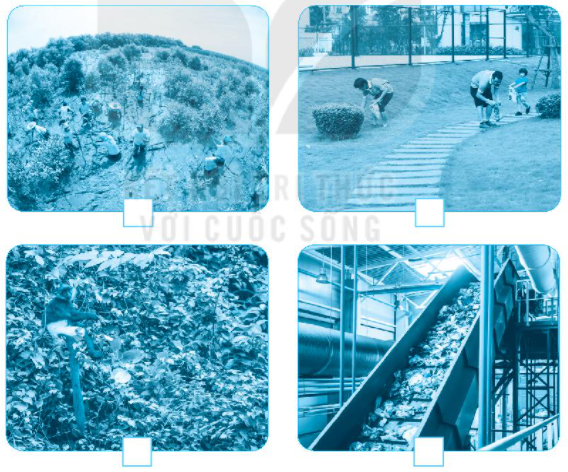 Khoanh bằng bút màu xanh vào những gì có trong hình 1 mà không có hoặc đang thay đổi ở hình 2. Khoanh bằng bút màu đỏ vào những gì có ở hình 2 mà không có ở hình 1. Vì sao nhiều cây bị héo úa và nhiều con vật bị biến mất ở hình 2? Viết vào chỗ (…) câu trả lời của em. Viết các số từ 1 đến 4 vào dưới mỗi hình cho phù hợp. Khoanh bằng bút màu xanh vào các cụm từ chỉ việc làm có lợi, màu đỏ vào các cụm từ chỉ việc làm có hại cho mỗi trường sống của thực vật và động vật. Nếu ở tình huống như bạn