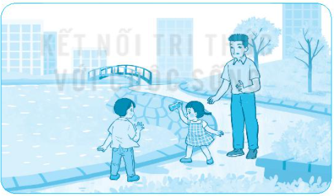 a) Khoanh bằng bút màu xanh vào những gì có trong hình 1 mà không có hoặc đang thay đổi ở hình 2. Khoanh bằng bút màu đỏ vào những gì có ở hình 2 mà không có ở hình 1.
