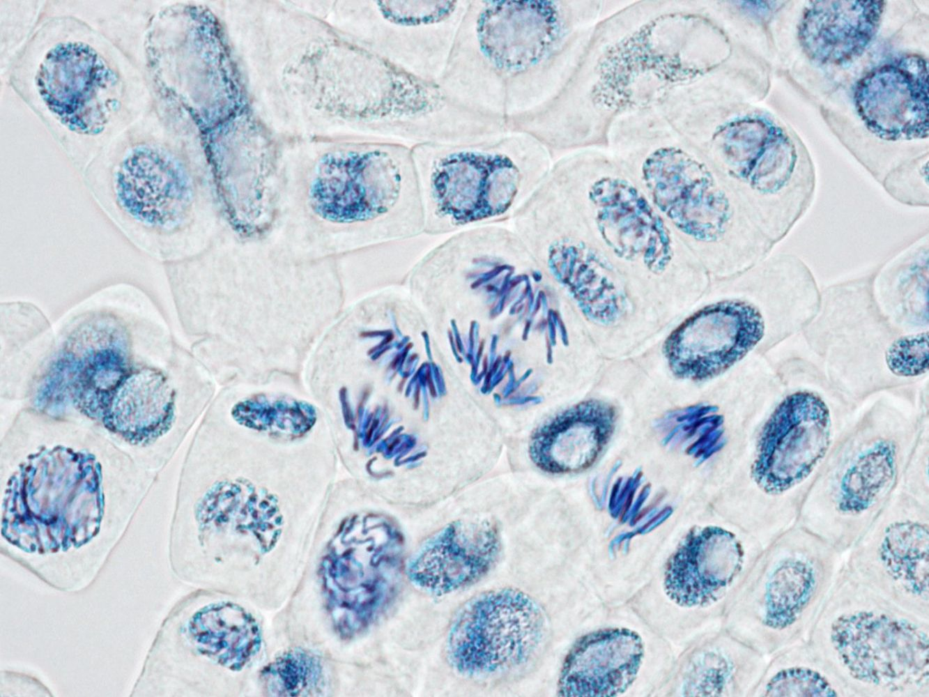 – Quan sát tiêu bản ở vật kính 40x để nhận dạng tế bào ở các kì khác nhau của nguyên phân.