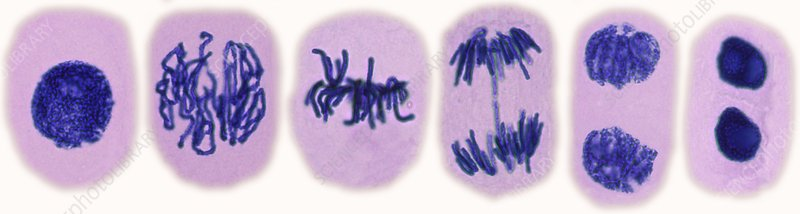 Kì cuối: NST duỗi xoắn, nằm trong 2 nhân mới. Tế bào hình thành eo thắt để phân chia tế bào chất.