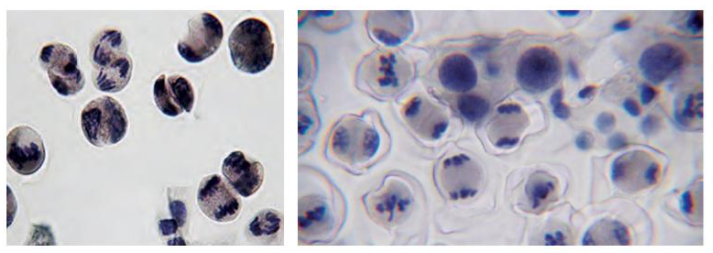 – Bình thường, việc đếm nhiễm sắc thể trong tế bào thường gặp trở ngại ở loài có số lượng hoặc kích thước nhiễm sắc thể trong tế bào lớn bởi nhiễm sắc thể có thể nằm chồng chéo lên nhau, khó quan sát.