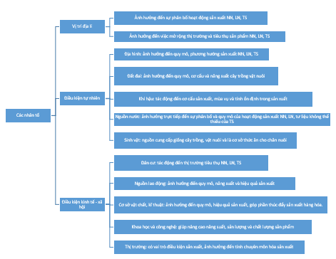 Dựa vào kiến thức đã học, em hãy hoàn thành sơ đồ các nhân tố ảnh hưởng tới phát triển và phân bố nông nghiệp, lâm nghiệp, thủy sản dưới đây