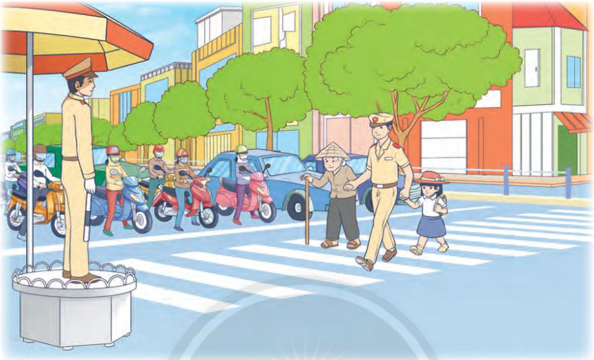 – Chú công an giao thông đang dẫn bà cụ và em nhỏ sang đường.