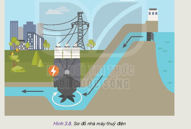 Quan sát hình 3.8 hãy mô tả nguyên lý hoạt động của nhà máy thủy điện