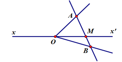 Đường thẳng $xx’$ cắt năm đoạn thẳng $OA;OB;AB$; $MA;MB$