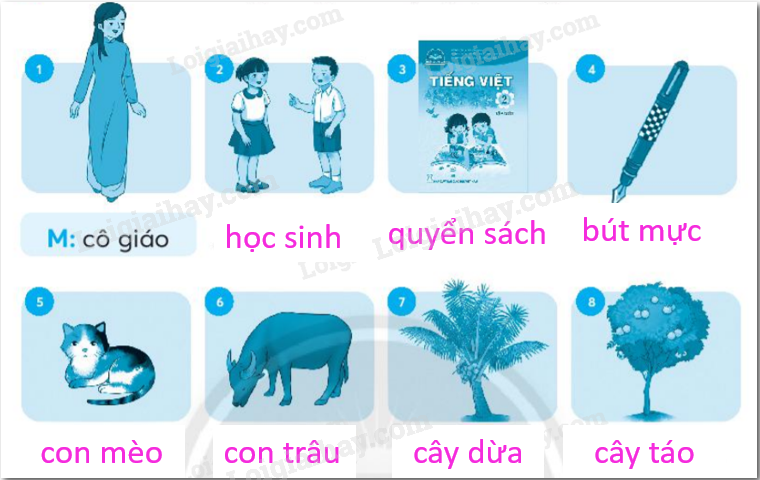 Điền vào chỗ trống từ ngữ chỉ sự vật phù hợp với mỗi bức tranh: