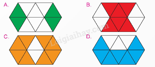 b) $\frac{3}{5}$ bằng phân số chỉ phần đã tô màu của hình nào dưới đây?