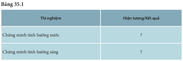 1. Thí nghiệm chứng minh tính hướng nước của cây