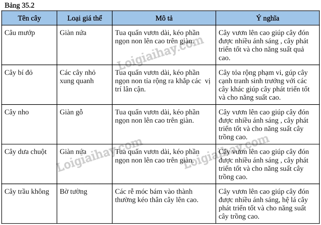 – Ở phần lớn các loài cây thân leo như bầu, bí, nho, đậu biếc,… có tính hướng tiếp xúc (bám vào giá thể để leo, hướng thân cây lên trên).