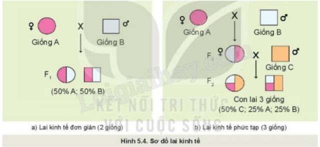 Quan sát Hình 5.4, hãy cho biết sự khác nhau giữa lai kinh tế đơn giản và lai kinh tế phức tạp.