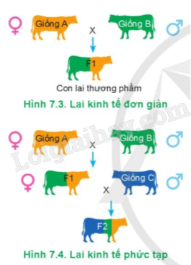 Dựa vào hình 7.3 và hình 7.4, hãy so sánh hình thức lai kinh tế đơn giản và lai kinh tế phức tạp.