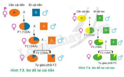 Dựa vào hình 7.5 và 7.6, hãy so sánh lai cải tiến với lai cải tạo.