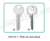 Quan sát Hình 8.1 và cho biết: Có thể sử dụng những dụng cụ nào để làm ra chìa khoá (b) từ phôi (a)?