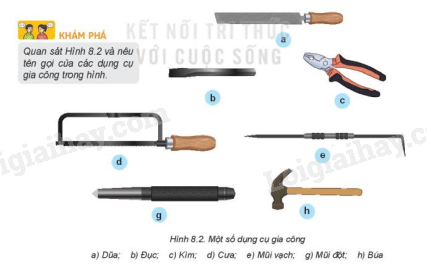 Quan sát Hình 8.2 và nêu tên gọi của các dụng cụ gia công trong hình.