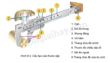 Quan sát hình 8.4 để nêu cấu tạo của thước cặp