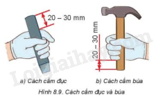 Quan sát Hình 8.9 và mô tả cách cầm đục và búa.