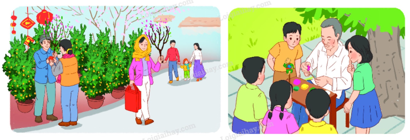 – Từ ngữ chỉ người: người bán hàng, người bán chậu quất, người bán cây cảnh, người bán cành đào, người đàn ông, người mua cây cảnh, người mua chậu quất, người mua cành đào, người đi chợ, người phụ nữ, người nặn đồ chơi, bạn nhỏ, bạn nam, bạn nữ, trẻ em,…