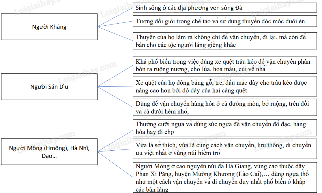 a. Đoạn trích trên nói về các phương tiện vận chuyển của các dân tộc: Kháng, Sán Dìu, Mông, Hà Nhì, Dao,… Họ sống chủ yếu ở vùng núi phía Bắc nước ta.