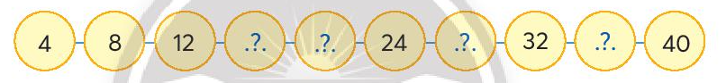 Đếm thêm 4 đơn vị rồi viết số còn thiếu vào chỗ trống.