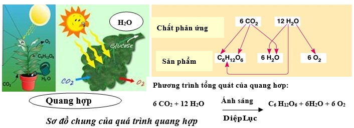 – Giai đoạn tổng hợp: Chất diệp lục của cây xanh đã thu nhận và chuyển hóa quang năng thành hóa năng tích lũy trong các chất hữu cơ từ CO2, nước. Động vật lấy năng lượng (hóa năng) sẵn có trong thức ăn.