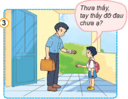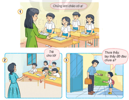 Bạn học sinh đang hỏi thăm tình hình sức khỏe của thầy giáo. Em đồng tình với việc làm này vì đó là việc làm thể hiện sự quan tâm, lo lắng mà học trò dành cho thầy giáo.