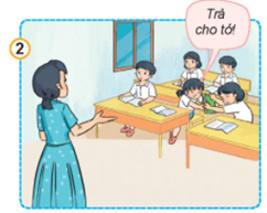 Hai bạn học sinh đang tranh giành đồ trong khi cô giáo đang giảng bài. Em không đồng tình với việc làm trên vì đó là việc làm thiếu tôn trọng cô giáo.