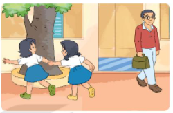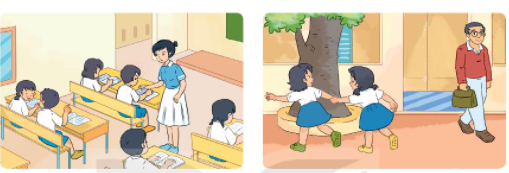 số bạn nói chuyện, không nghe cô          đi theo hướng khác để không phải chào thầy.