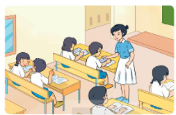 Các bạn học sinh lễ phép đứng nghiêm chào cô khi cô giáo bước vào lớp. Em đồng tình với việc làm này thì đó là việc làm thể hiện sự tôn trọng cô giáo.