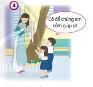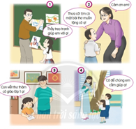 Hai bạn nhỏ chủ động giúp đỡ cô giáo. Các bạn rất kính trọng và yêu quý cô giáo.