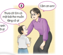 Bạn nam làm một bài thơ tặng cô giáo và nói rất lễ phép với cô “Thưa cô…”. Bạn là người biết thể hiện sự kính trọng cô giáo.