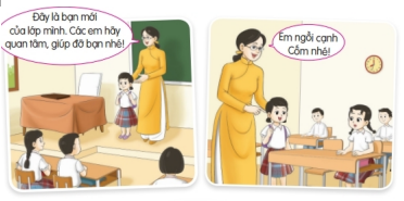 Lớp mới có bạn chuyển đến và cô xếp bạn ấy ngồi cạnh Cốm. Nếu em là Cốm, em sẽ vui vẻ chào đón bạn ấy “Chào bạn, mình là Cốm. Rất vui được gặp bạn. Nếu có gì khó khăn, cậu cứ nói với mình nhé!” và giúp bạn hòa nhập với lớp