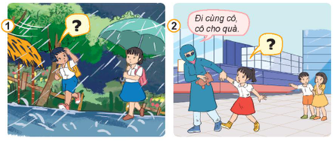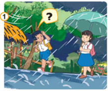 Khi bạn nam quên mang ô mà trời mưa to, bạn nhỏ có thể nhờ một cách lịch sự những người đi đường cho che nhờ ô để không bị ướt, tránh bị cảm lạnh.