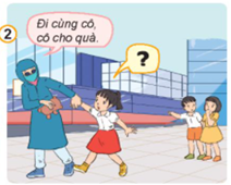 Bạn nhỏ đang bị một người phụ nữ lạ mặt lôi kéo, dụ dỗ. Bạn nữ nên hét to để mọi người xung quanh biết và giúp đỡ bạn thoát khỏi nguy hiểm, tránh trường hợp xấu là bạn bị bắt cóc.