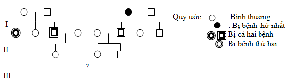 Câu 9. Phả hệ dưới đây mô tả hai bệnh di truyền phân li độc lập với nhau, mỗi bệnh do một gen quy định.