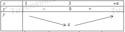 Câu 24. Gọi m là giá trị nhỏ nhất của hàm số \(y = x – 1 + \frac{4}{{x – 1}}\) trên khoảng \(\left( {1; + \infty } \right)\). Tìm m?